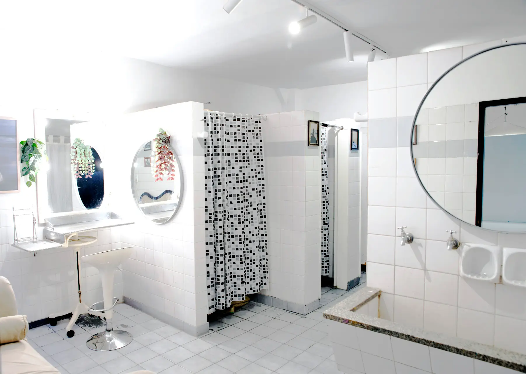 Uno ubicado dentro del estudio, tipo vestuario, con ducha, espejo de maquillaje individual y un espacio anexo de 6 x 5 metros, ideal para cambios de vestuario, retoques o uso exclusivo del equipo técnico y artístico.